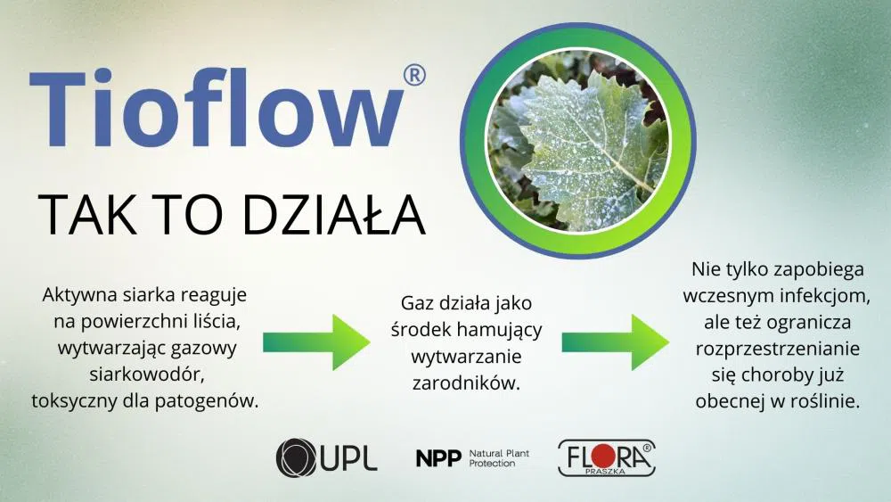 Wyłącznym dystrybutorem Tioflow jest Flora Sp. z o.o., a ten innowacyjny biofungicyd dostarcza UPL – firma o uznanej renomie w obszarze produkcji profesjonalnych środków ochrony roślin.